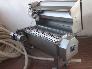 Semi-centrifugal destemming machine with transfer pump. Available in iron or stainless steel.