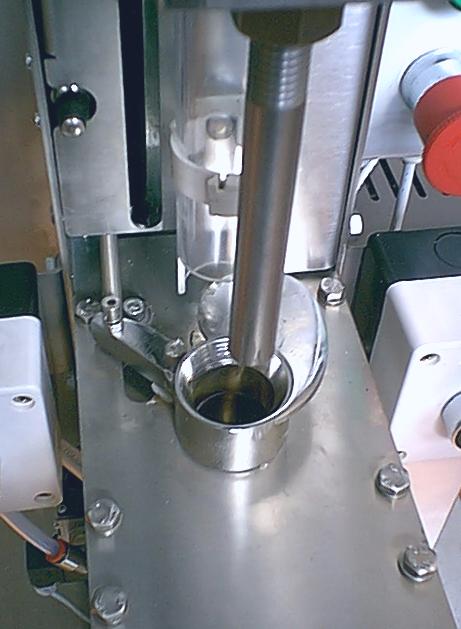 Semi-automatic cork stopper for smooth corks. Frame made of stainless steel and feeding hopper caps. Available with nitrogen injection kit and vacuum bottled production kit.